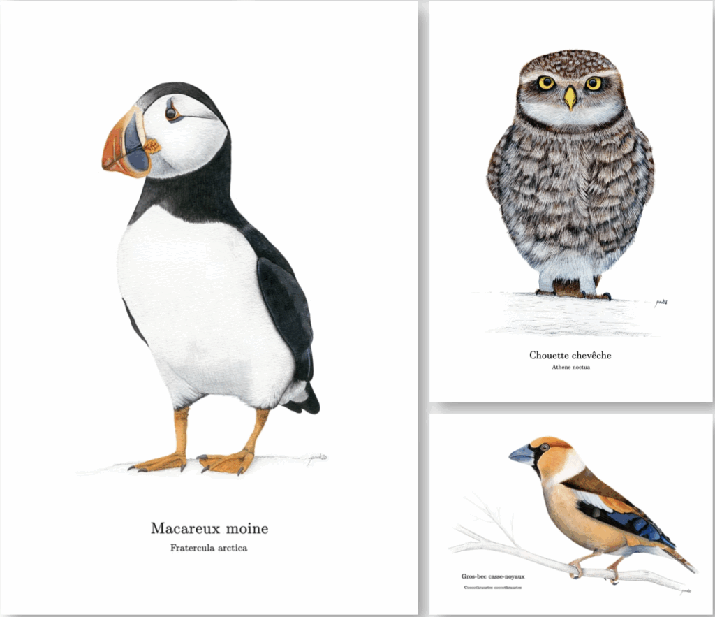 J’ai toujours dessiné et j’ai choisi d’en faire mon métier. J’ai fait mes études de graphiste à Nantes et j’ai travaillé ensuite comme infographiste dans l’immobilier. Il y a quatre ans, j’ai repris le dessin, ma boîte à aquarelles, par plaisir. Proche de la nature, je prend plaisir à peindre méticuleusement plantes et oiseaux.