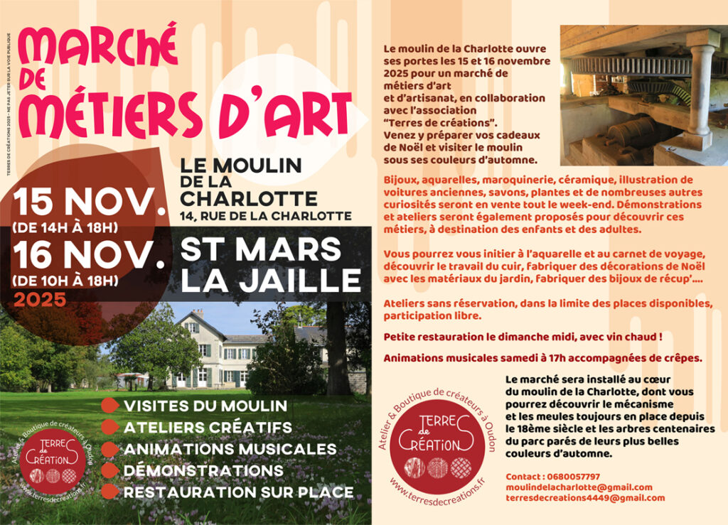 Pour la première fois, l’association Terres de Créations organise un marché au sein du Moulin de la Charlotte, à Saint-Mars-la-Jaille.