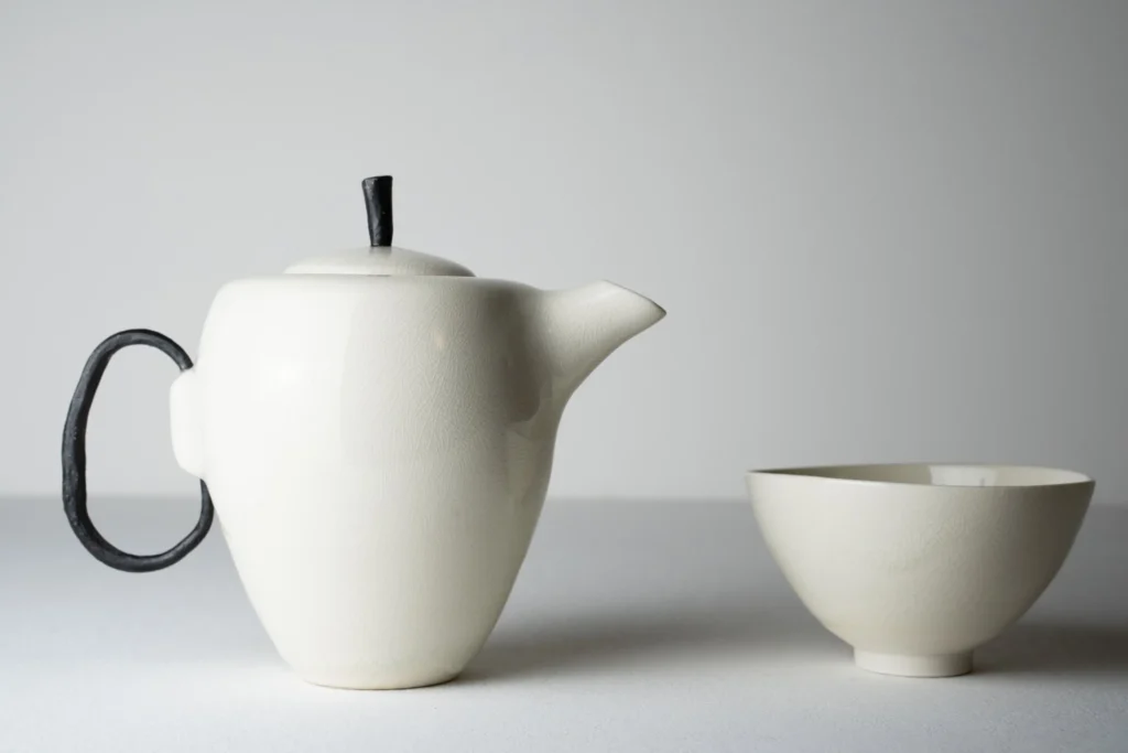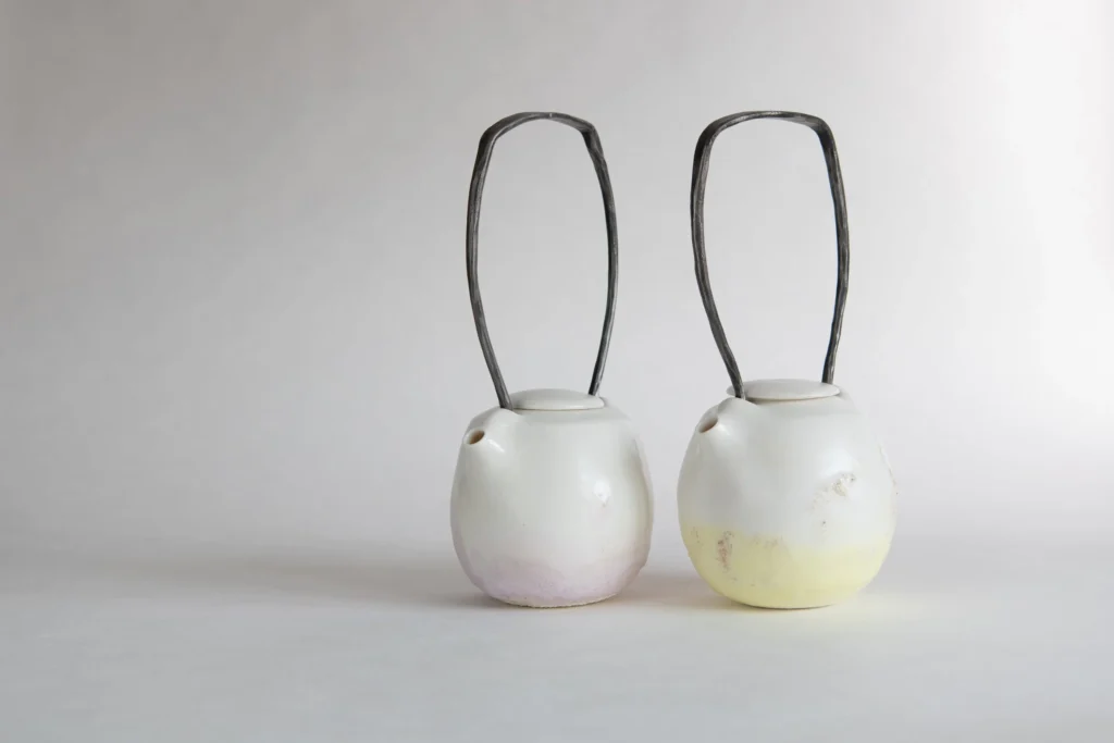 Je crée des objets utilitaires en porcelaine et en terre du Fuilet, émaillées d’une superposition d’émaux Kudo-matto et de sables. Les anses sont forgées par mes soins.