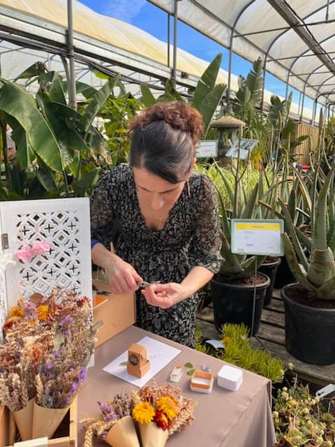 Artisane bijoutière, fleuriste et décoratrice, elle met en valeur les fleurs et végétaux du Pays d’Ancenis à travers ses créations.